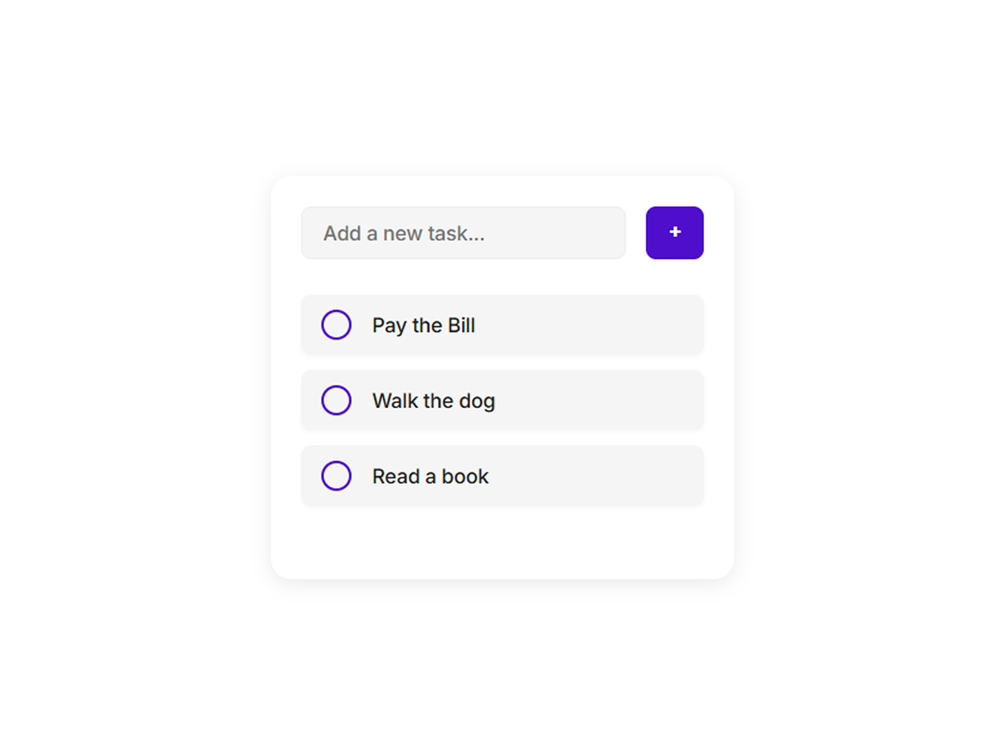 A clean and minimalist to-do list component perfect for productivity apps and personal projects. This component features a modern design with a simple add task function and checkbox interactions.